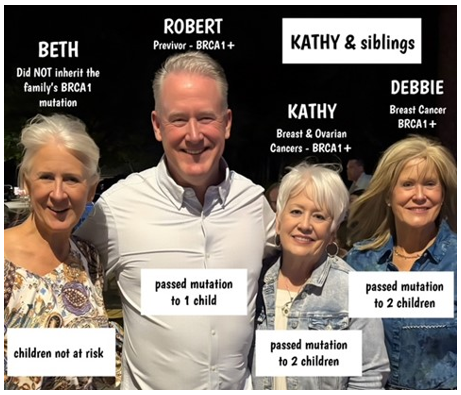 For nine years, at every checkup my oncologist would once again bring up the subject of genetic testing. My response was always the same: “I’ll think about it.” But I didn’t. Finally, in 2009, my sister and I agreed to the testing when our mother was nearing the end of her own battle with cancer. We both tested positive for a BRCA1 mutation, and I knew I needed to have two risk-reducing surgeries, a double mastectomy and a complete hysterectomy. However, because I was self-employed, I did not have the time to take off work for two separate major surgeries, so my oncologist worked with me to make sure my one “big” surgery happened. After over 10 hours of surgery, I was stunned to learn the surgeon had unexpectedly discovered I already had early ovarian cancer! I firmly believe that I am alive today because of genetic testing. Had I not learned about MY FAULTY GENE through genetic testing and chosen risk-reducing surgeries, my cancer would have gone undetected until it was too late. I count every year since as a miracle year!